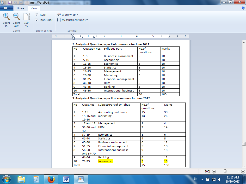The questions in paper III was not proportional. The 5 questions from Tax, which was a separate option, no coinciding with other options, were just unexpected.